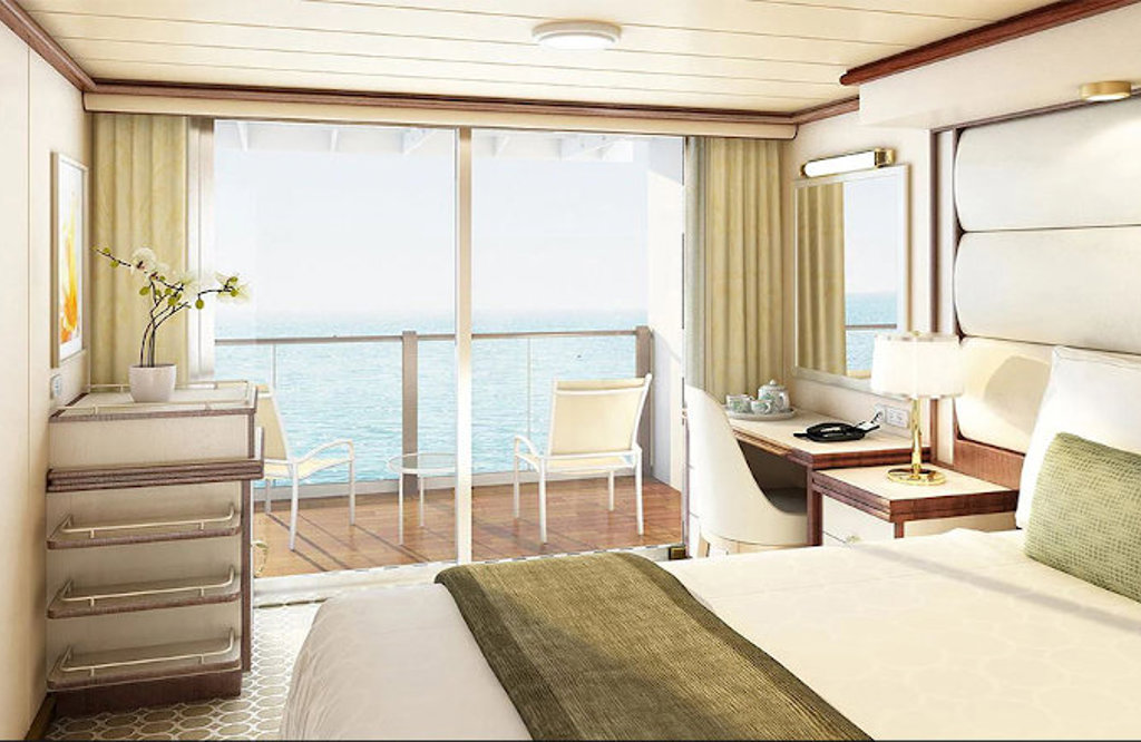 This impressive stateroom offers the added indulgence of a balcony and gives you more space than a standard stateroom. Enjoy your own private outdoor space with a table, two chairs, and a relaxing view of the inspiring scenery surrounding you, whether a beautiful sunset over the ocean or a new city to explore. Its also perfect to enjoy cocktails before dinner or a leisurely breakfast.