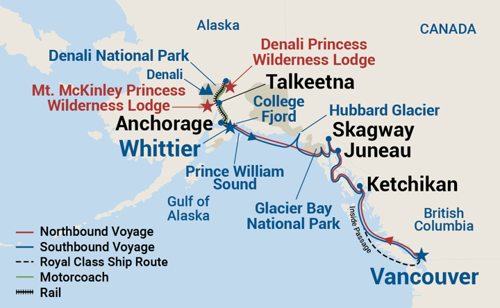 Whittier tours are available to passengers on back-to-back voyages who will stay onboard the ship and cruise back to Vancouver as well as guests ending their cruise in Whittier wiith an evening flight out of Anchorage on the day of disembarkation or an overnight in Anchorage after their cruise. Whittier tours are only available to cruisetour guests who spend the first night of their package in Anchorage. Other cruisetour guests cannot take an excursion as they would miss the transfer their next destination.