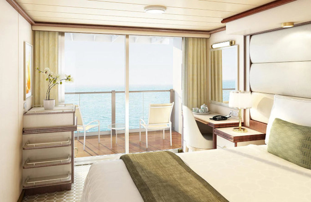 This impressive stateroom offers the added indulgence of a balcony and gives you more space than a standard stateroom. Enjoy your own private outdoor space with a table, two chairs, and a relaxing view of the inspiring scenery surrounding you, whether a beautiful sunset over the ocean or a new city to explore.