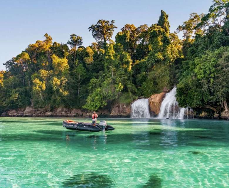 North of Triton Bay, in the Indonesian province of West Papua, lie the Bomberai Peninsula and Sebakor Bay. A real paradise for divers, this protected, authentic and very wild area boasts an exceptional biodiversity. Here, you will be able to admire the superb Kitikiti Waterfall where you could enjoy a swim or snorkel surrounded by lush nature, both on land and under water.