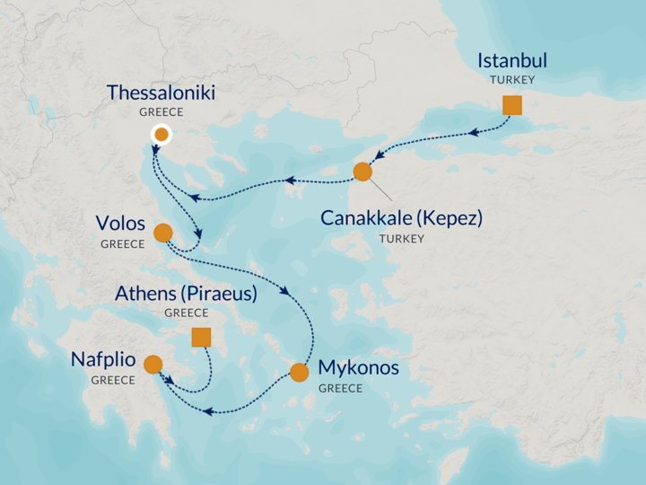 Fly into Istanbul for a three-night stay, where the city’s warmth and exotic charm set the tone for your journey. Set sail on an immersive Greek Isles cruise, discovering picture-perfect villages, exquisite cuisine, and fascinating archaeological treasures, before concluding with two unforgettable nights in Athens.