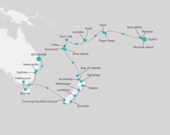 08 Feb 27 – 18 Mar 27 -  37 nights TAHITI to BRISBANE