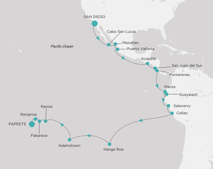 08 Jan 27 – 08 Feb 27 - 31 nights SAN DIEGO to TAHITI