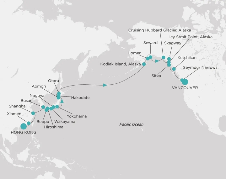 23 Apr 27 – 27 May 27 -  35 nights HONG KONG to VANCOUVER