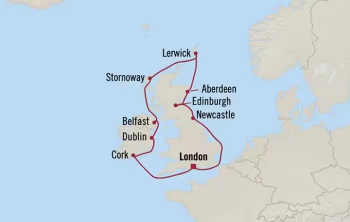 Enjoy London with a two-night stay, soaking in its theatre, history, and lively pubs. Then step aboard Insignia, and set sail towards northern treasures—explore Edinburgh’s dramatic castle, uncover Viking history in the Shetlands, and soak in the rugged beauty of the Hebrides. Continue to Belfast and Dublin, blending rich history, local experiences, and breathtaking coastal landscapes.