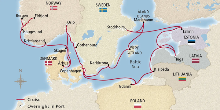 Circle the Baltic and unwind in the lands that shaped Viking legacy—stops include old-world capitals, the Åland Islands, and Baltic gems like Tallinn and Riga. Explore Scandinavian culture in Oslo and Stockholm and see sweeping coastlines, medieval towns, and maritime heritage up close. With 17 guided tours across 8 countries, this is a rich immersion in history and landscape. All that, delivered with Viking’s refined comfort and pace.
