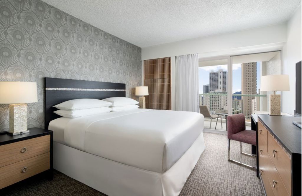 The Sheraton Princess Kaiulani Waikiki Kaiulani King Room offers a comfortable island-inspired retreat with modern amenities and views of vibrant Waikiki.