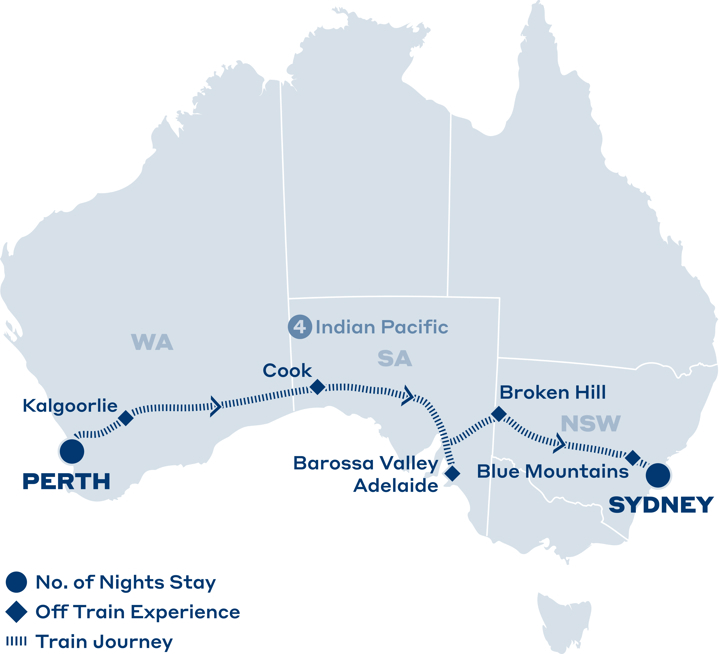 - 5 days/4 nights aboard the Indian Pacific from Perth to Sydney